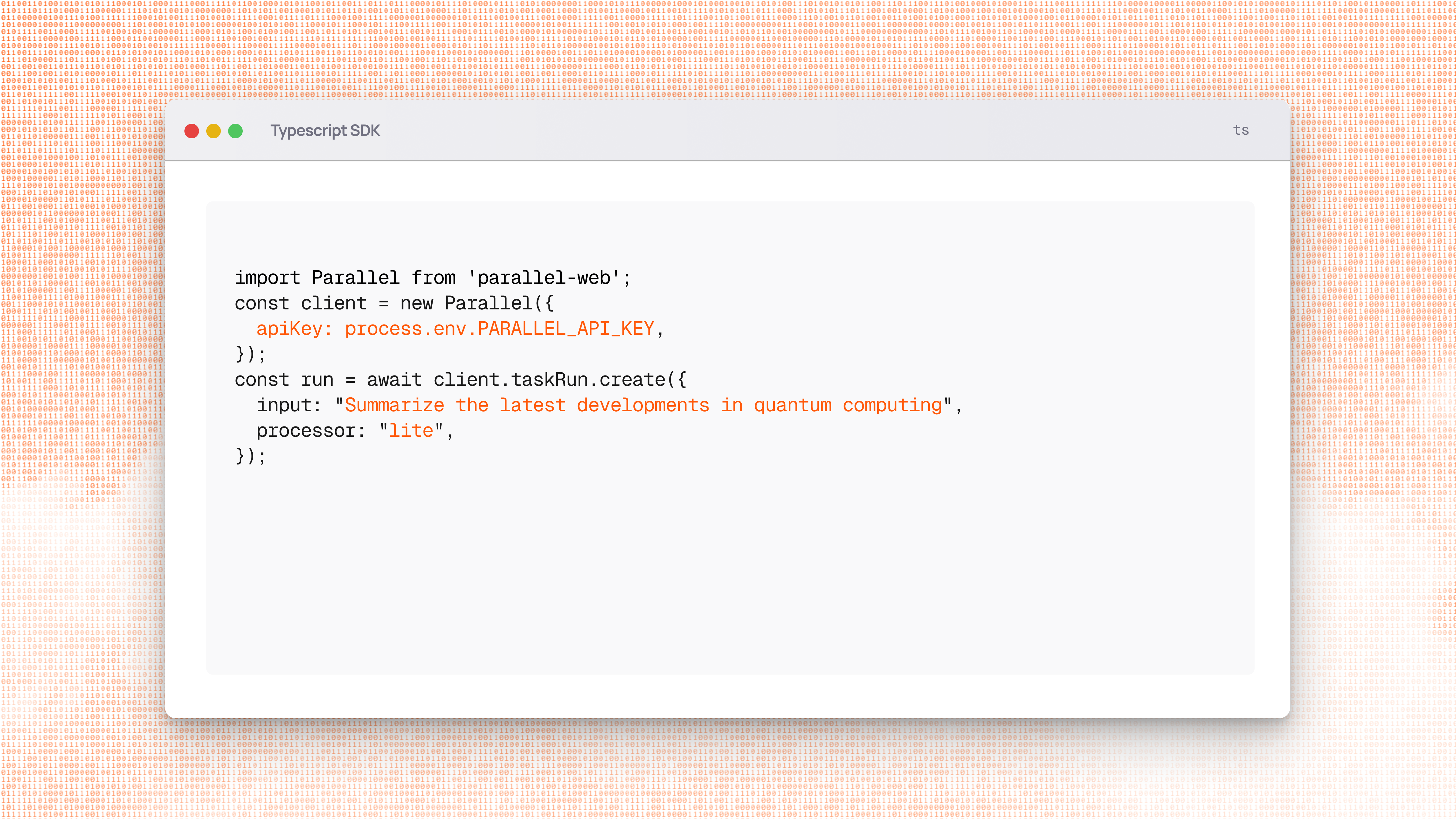 Our SDK is now available for Python, making it easy to implement Parallel into your applications. The Python SDK is at parity with our Task API endpoints and simplifies request construction and response parsing.Flexible Processors