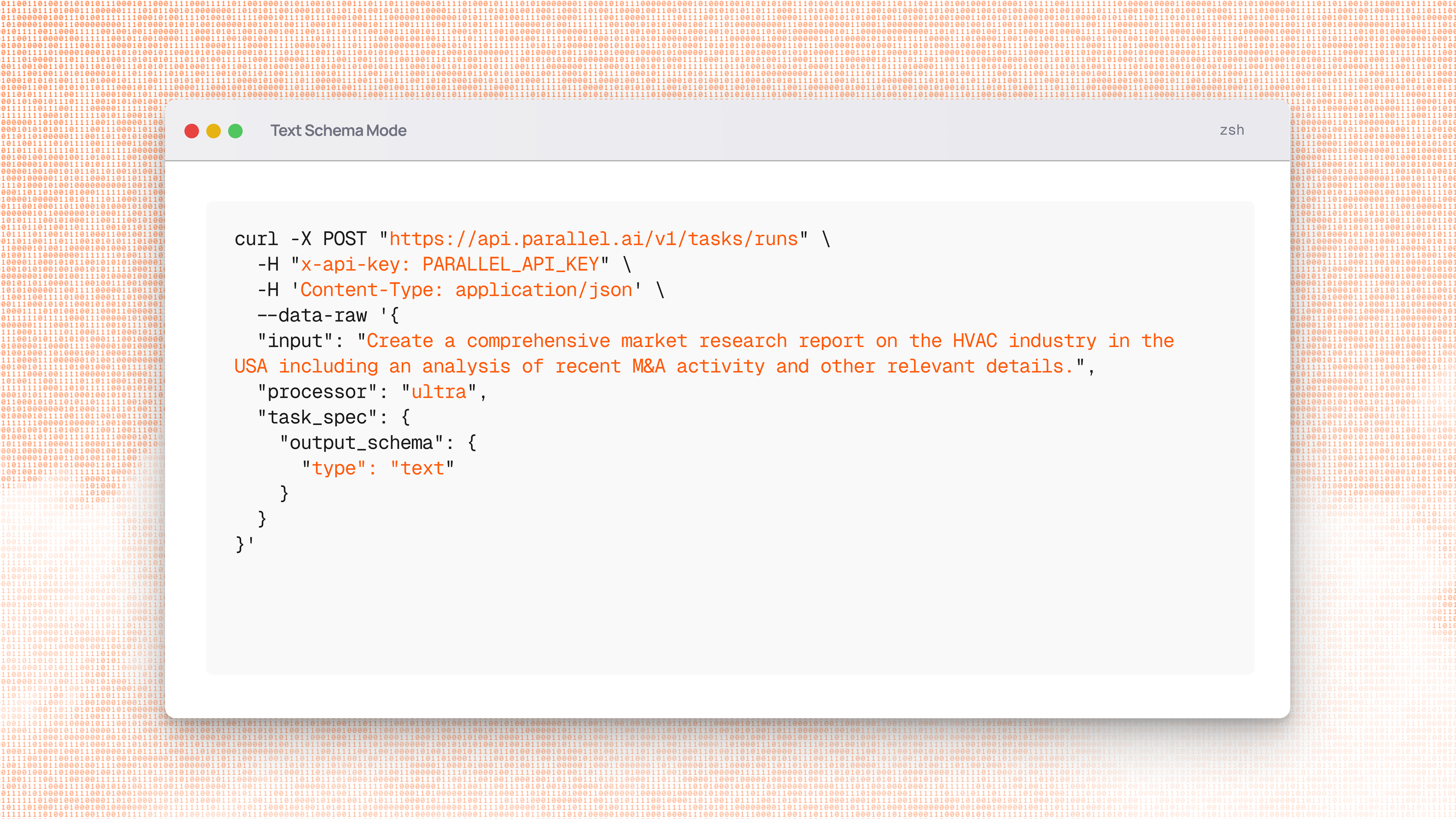 Parallel Tasks now support comprehensive markdown Deep Research report generation. Every Deep Research report generated by Parallel comes with in-line citations and relevant source excerpts for full verifiability. Simply enableoutput_schema: text to get started. Learn more in our latest blog.